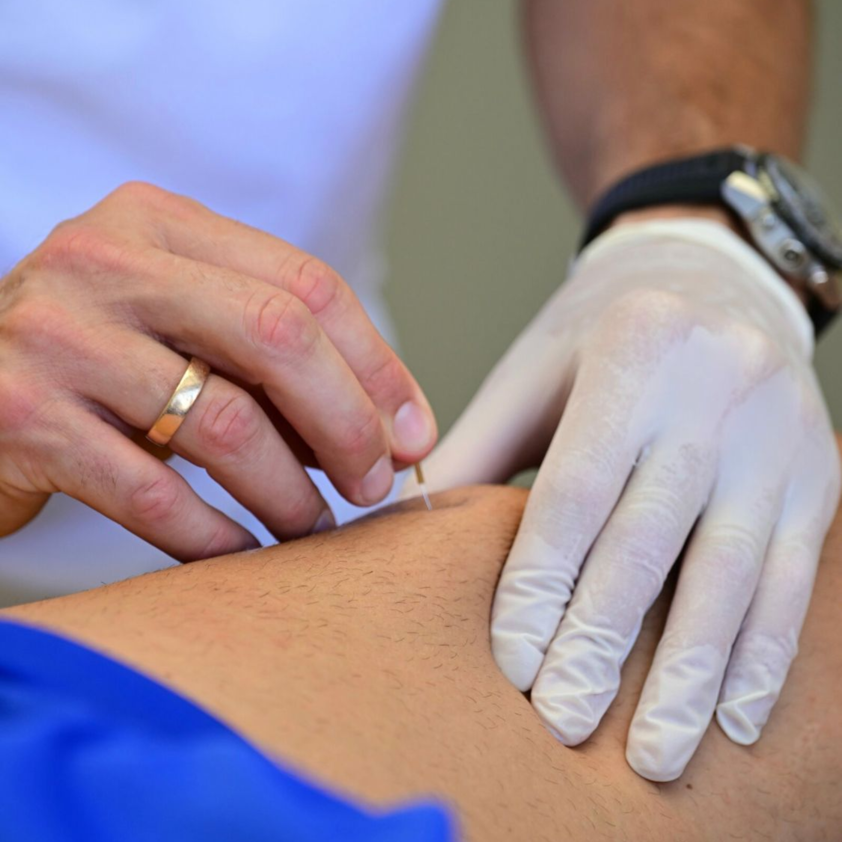 Mit feinen Akupunkturnadeln werden gezielt verspannte Muskelfasern behandelt, um myofasziale Triggerpunkte zu lösen, Schmerzen zu lindern und die Selbstheilung zu fördern.